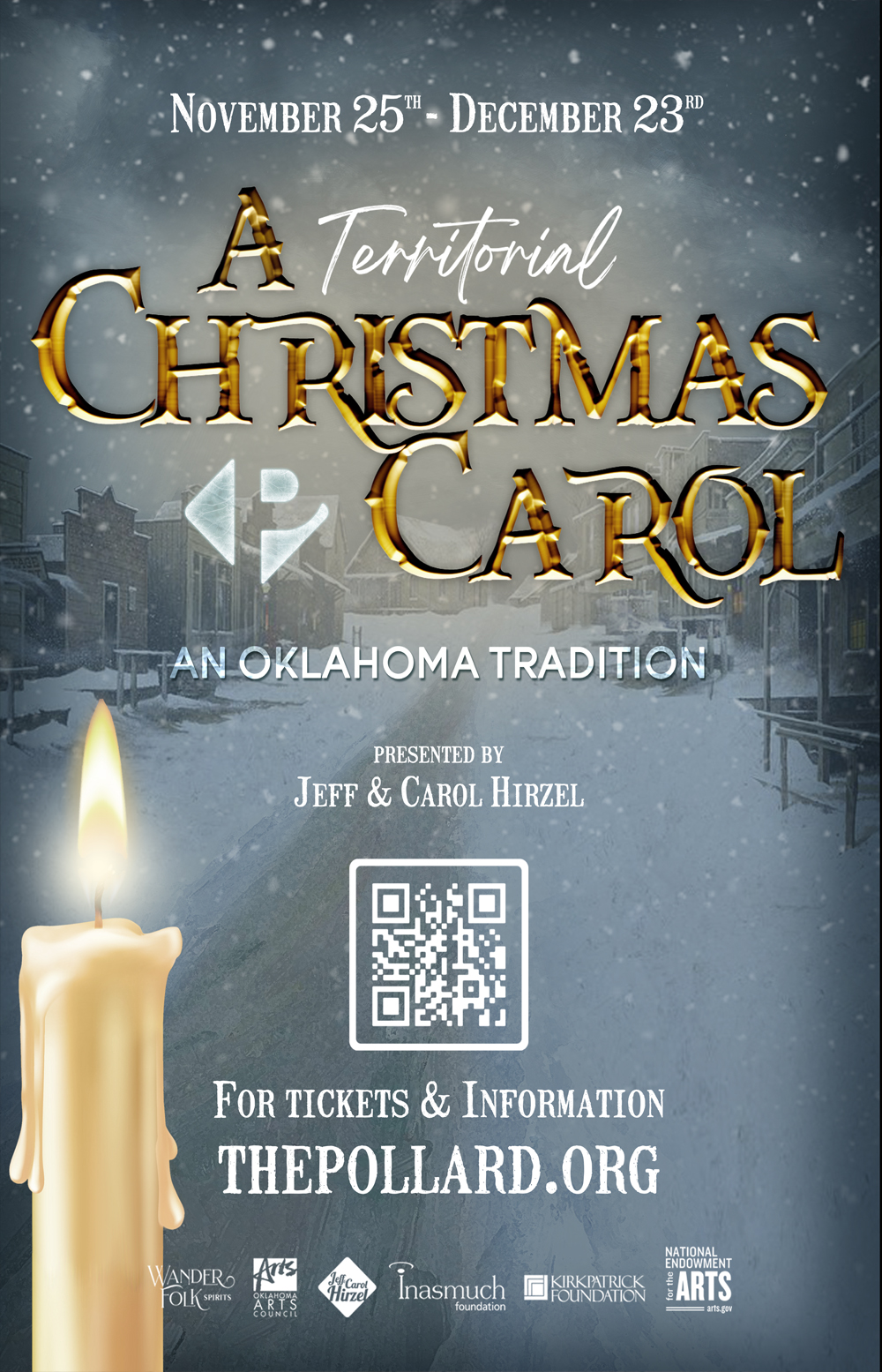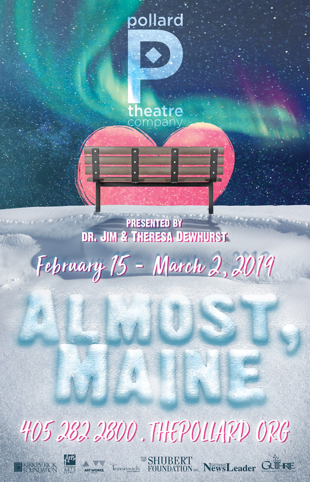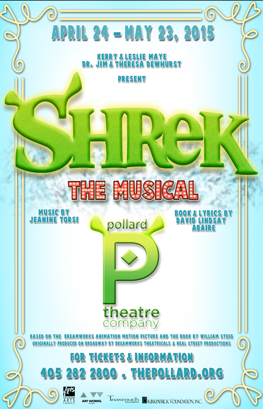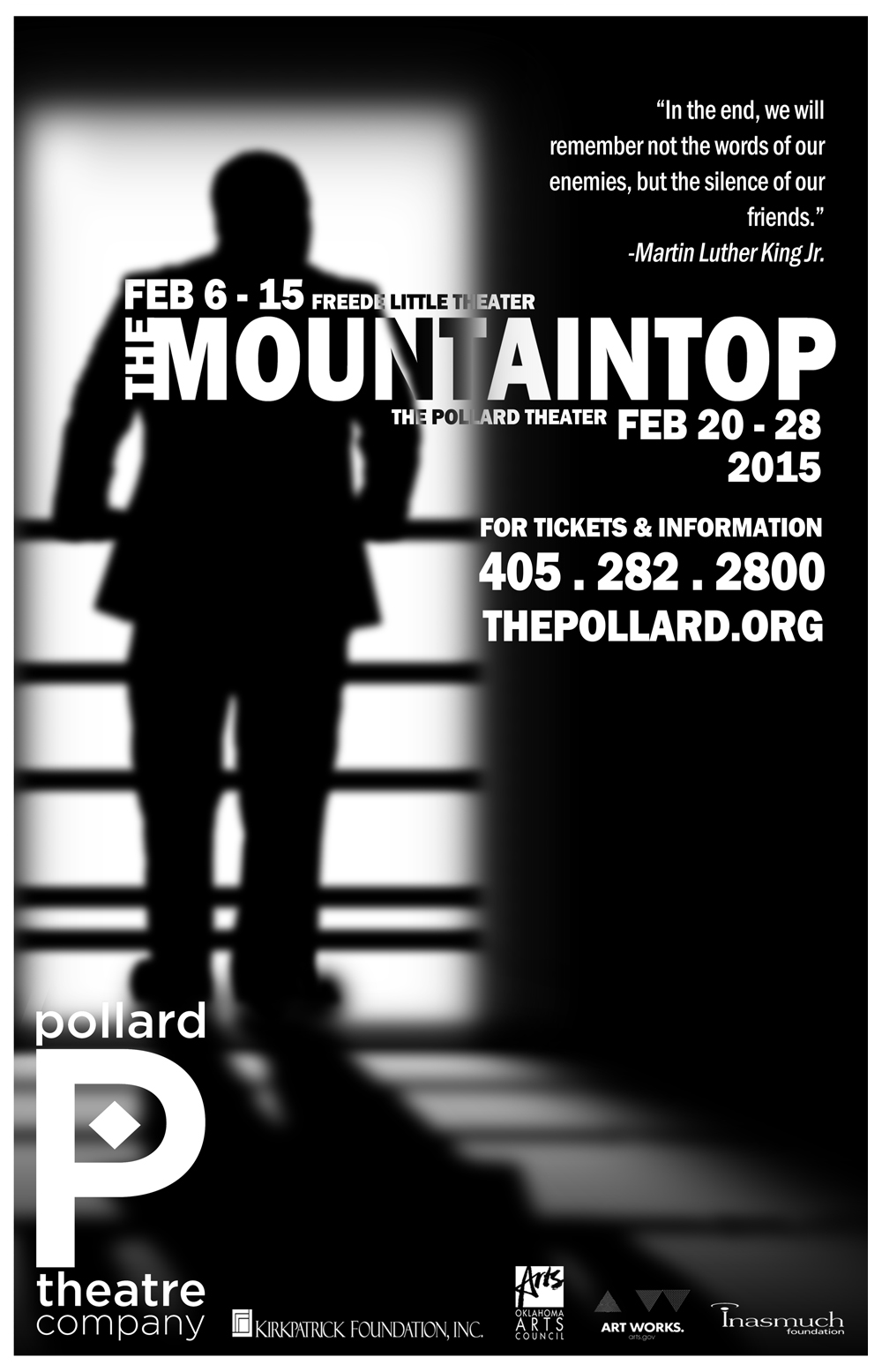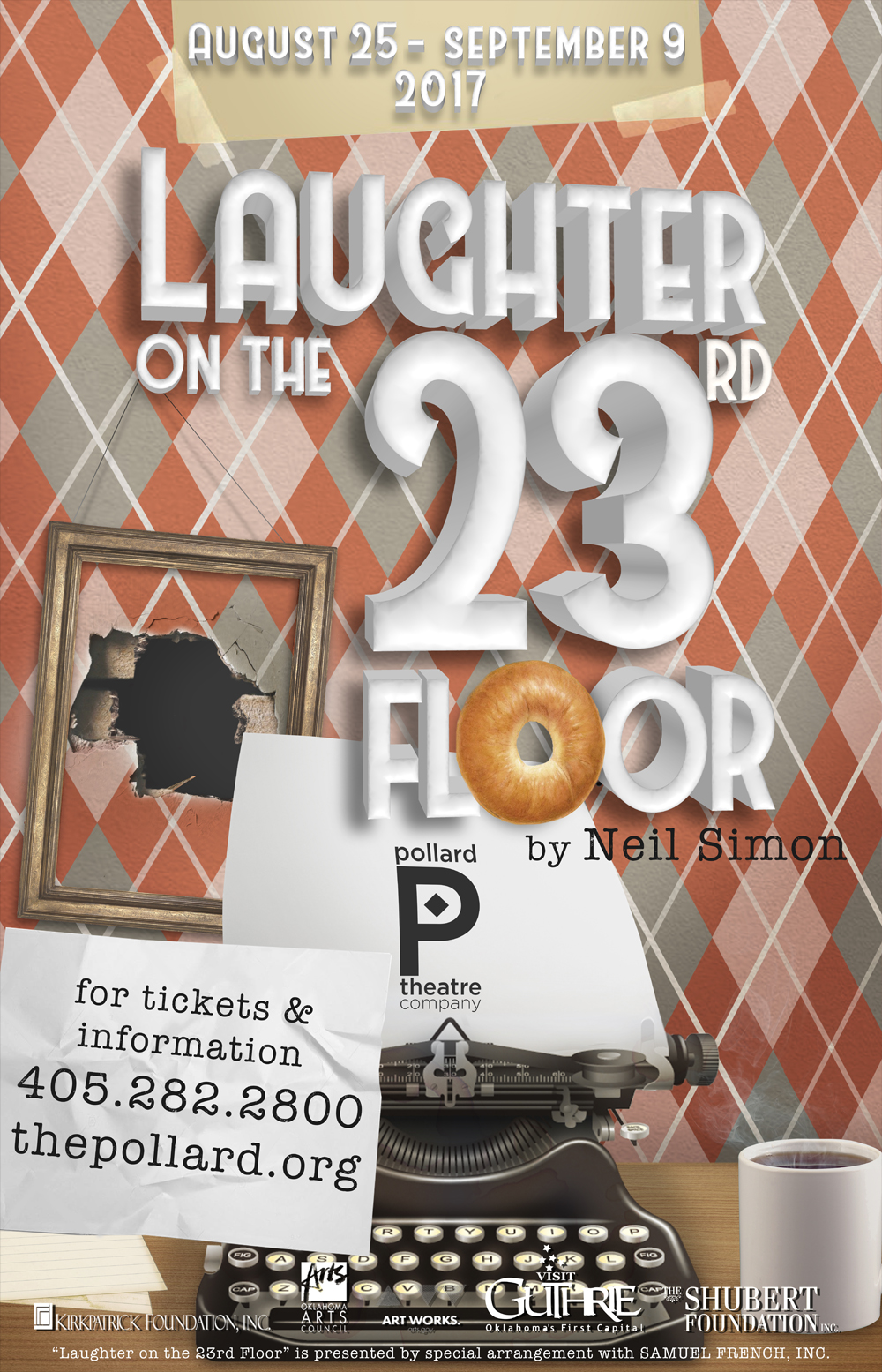 Pollard Theatre Company is a 501 (c)(3) nonprofit, whose mission is to produce professional theatre that engages and inspires Oklahoma’s audiences, and contributes to the quality of life and economy of our community and state. Additional assistance is provided by the Oklahoma Arts Council and the National Endowment for the Arts.