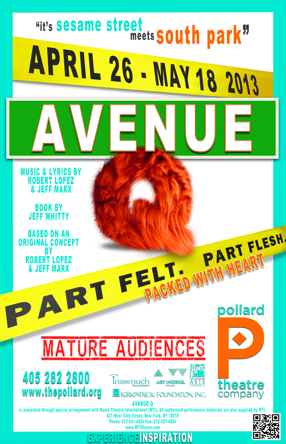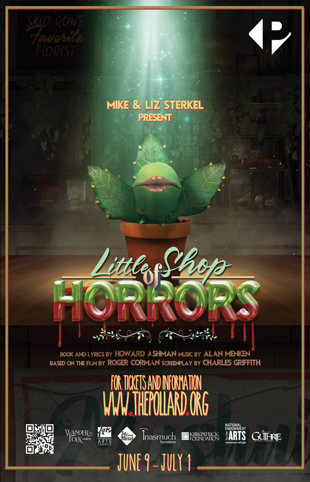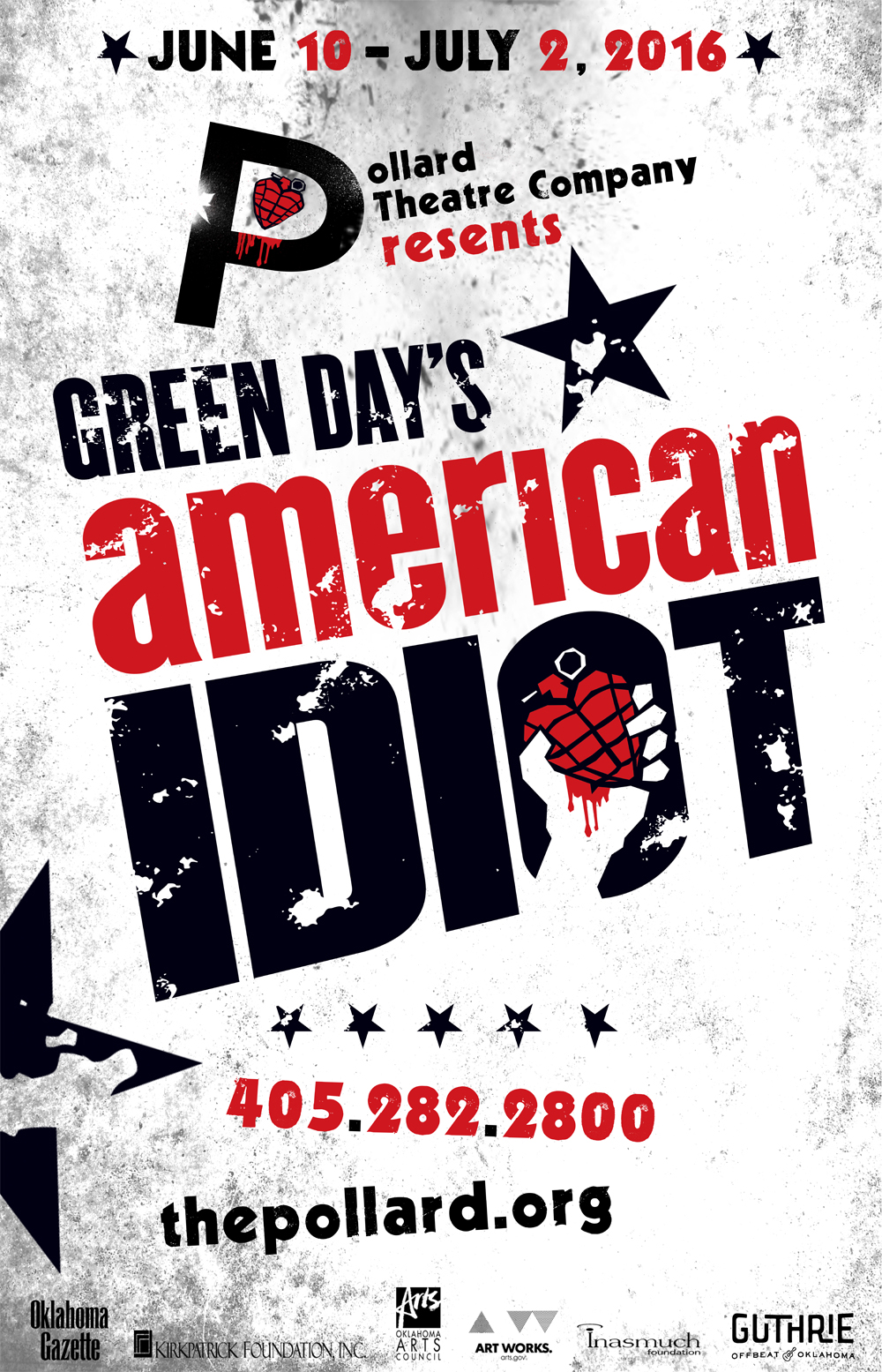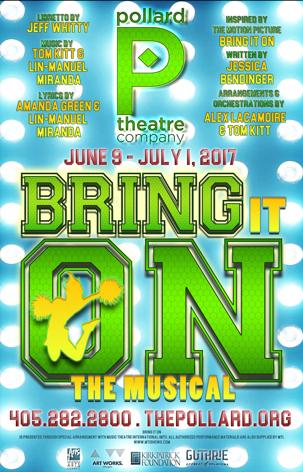 Pollard Theatre Company is a 501 (c)(3) nonprofit, whose mission is to produce professional theatre that engages and inspires Oklahoma’s audiences, and contributes to the quality of life and economy of our community and state. Additional assistance is provided by the Oklahoma Arts Council and the National Endowment for the Arts.